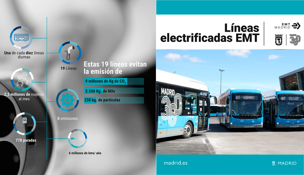 El Ayuntamiento persigue la electrificación de la totalidad de su flota de autobuses de manera gradual. Esta acción se acompasa con los objetivos de la Estrategia de Sostenibilidad Ambiental Madrid 360 y con el de la Empresa Municipal de Transportes (EMT) que persigue que un 25% de sus autobuses sean eléctricos en el año 2025.